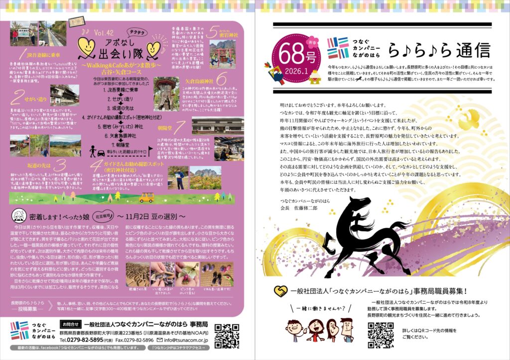 「つなカン」から皆さまへ、「つなカン」の活動や、町の魅力を「つなカン」目線でお届けする刊行物「ら♪ら♪ら通信」。第68号を1月13日より町内全戸配布しています。