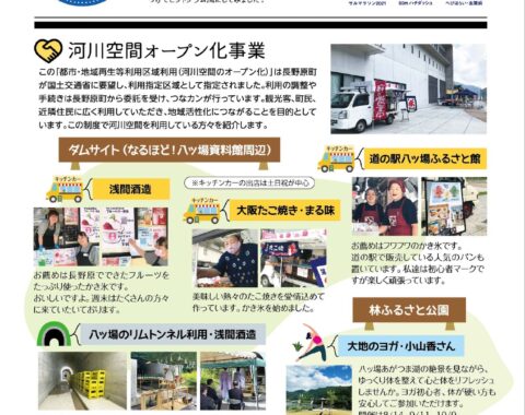 「つなカン」から皆さまへ、「つなカン」の活動や、町の魅力を「つなカン」目線でお届けする刊行物「ら♪ら♪ら通信」。第15号を8月10日より町内全戸配布しています。 つなカンの施設管理事業「河川空間オープン化事業」の紹介。