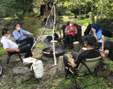 今回は焚き火を使った特別ミーティングということで、TAKIVIVA担当者による事業説明や施設見学ツアーなどを通じて、焚き火を使ったミーティングの効果など教えて頂きました。 その後、グループトークでは参加者が出したテーマに
