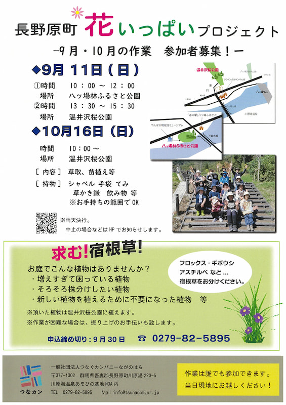 長野原町花いっぱいプロジェクト 9月・10月の作業は下記となります。 お誘いあわせのうえ、たくさんの方のご参加お待ちしております! つなぐカンパニーながのはらつなカンプロジェクト花いっぱい運動花壇作り長野原町長野原町花いっぱいプロジェクト Share Tweet